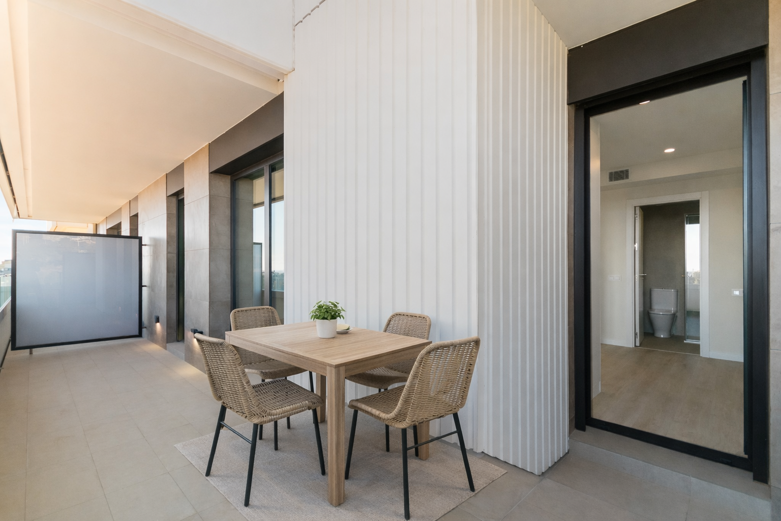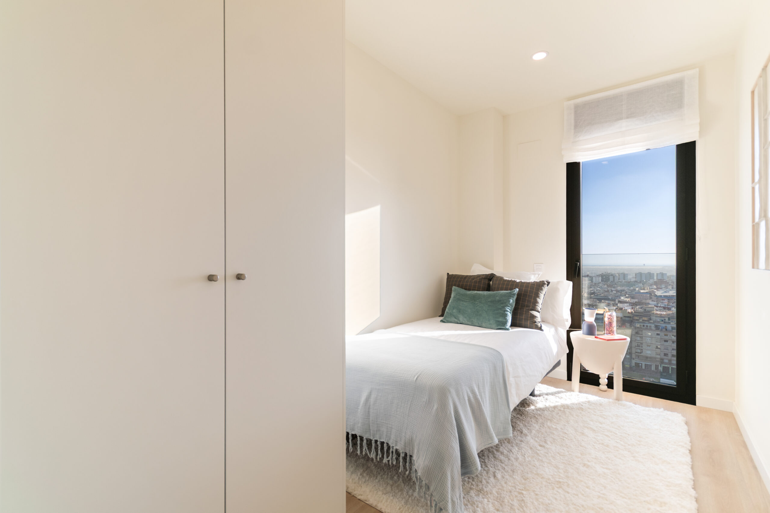 Vive en una elegante torre de 15 plantas con viviendas de 1, 2 y 3 dormitorios, todas con amplias terrazas de entre 10 y 30 m² y espectaculares vistas panorámicas a Barcelona.